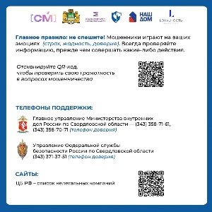 «Настоятельно просим соблюдать бдительность и помнить основные правила безопасности — игнорировать входящие звонки с незнакомых номеров, не доверять информации о каких-либо действиях по вашей карте, полученной в телефонном разговоре, не сообщать персональные данные незнакомцам. Только соблюдение этих простых правил позволит снизить вероятность стать жертвой мошенников. Если столкнулись с подобными или похожими мошенническими схемами – немедленно обратитесь по линиям 02 или 112», — резюмировал пресс-секретарь свердловского главка МВД Валерий Горелых.